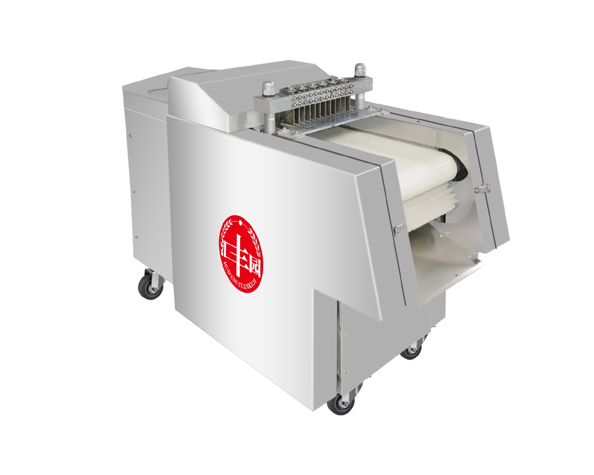 采用輸送帶進料、出料,切片厚度可按照用戶要求制作,可快速更換不同的刀組,滿足用戶各種規格的切片要求。能快速拆裝進、出料輸送帶及圓刀片組,整機采用防水設計,全不銹鋼制作,可直接用水沖洗機器。產品切割整齊,誤差非常小,方便操作,能實現產品快速包裝。標配尺寸25毫米;其它尺寸可定做。雞鴨禽類可帶骨切割為塊狀。
